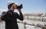 Первый легальный экскурсионный маршрут "Доступные крыши Петербурга". Фотограф во время экскурсии.