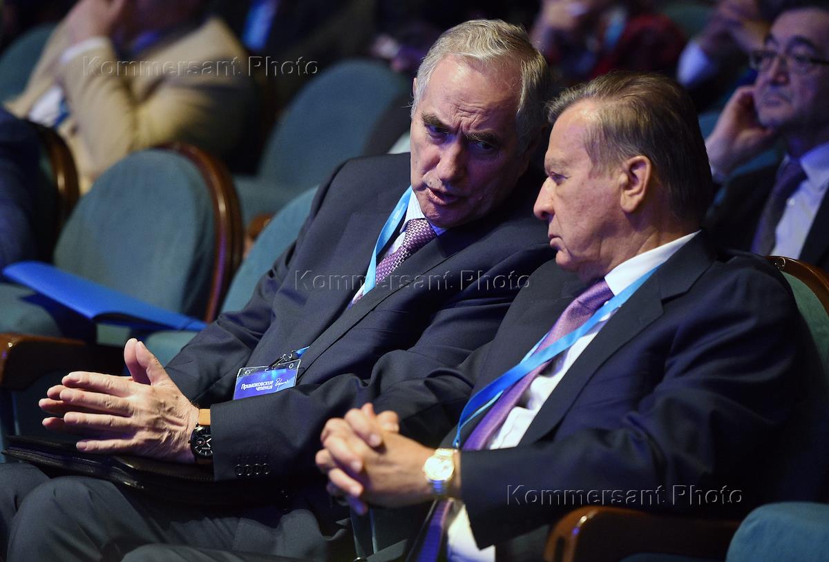 III Международный научно-экспертный форум "Примаковские чтения" прошел в Центре международной торговли (ЦМТ). Президент Ассоциации Российских Банков (АРБ) Гарегин Тосунян (слева) во время форума.