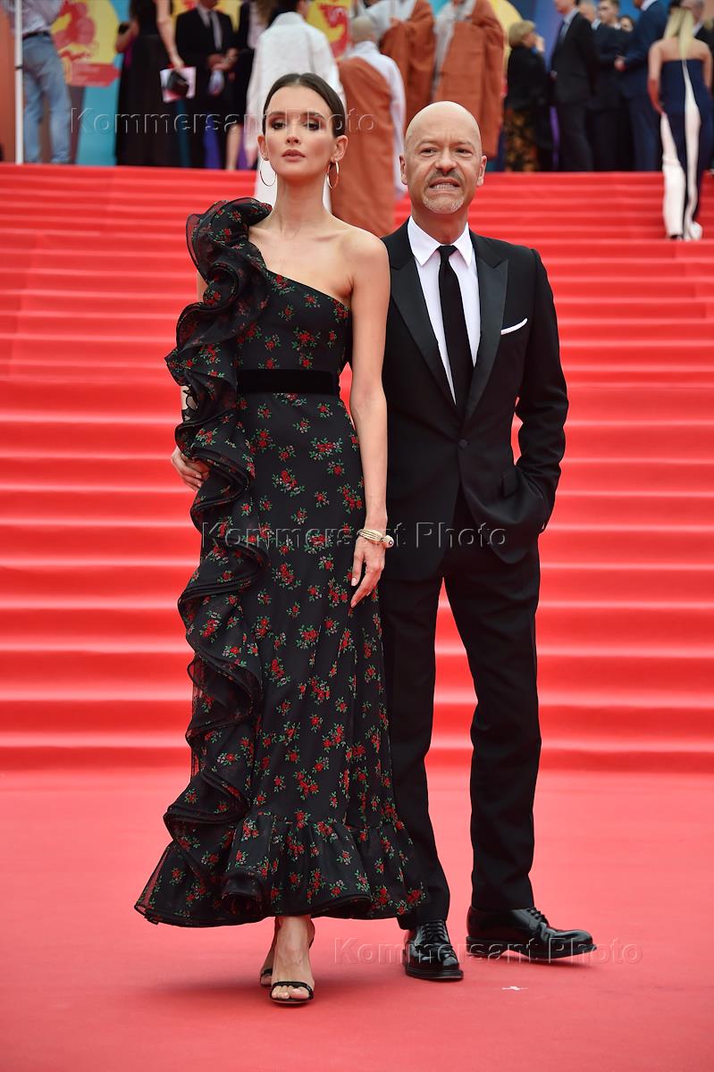Церемония закрытия 39-го Московского международного кинофестиваля (ММКФ). Актриса Анна Хилькевич (слева) и её супруг, бизнесмен Артур Волков (справа) во время церемонии.