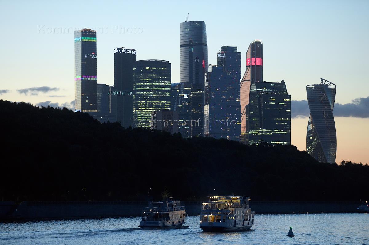 Views of Moscow. Moscow International Business Center (MIBC) "Moscow-city" and Pleasure boat on the Moskva River.