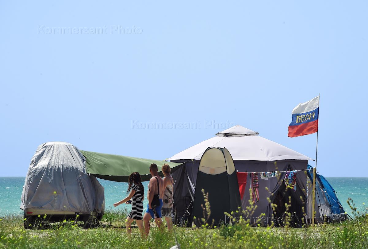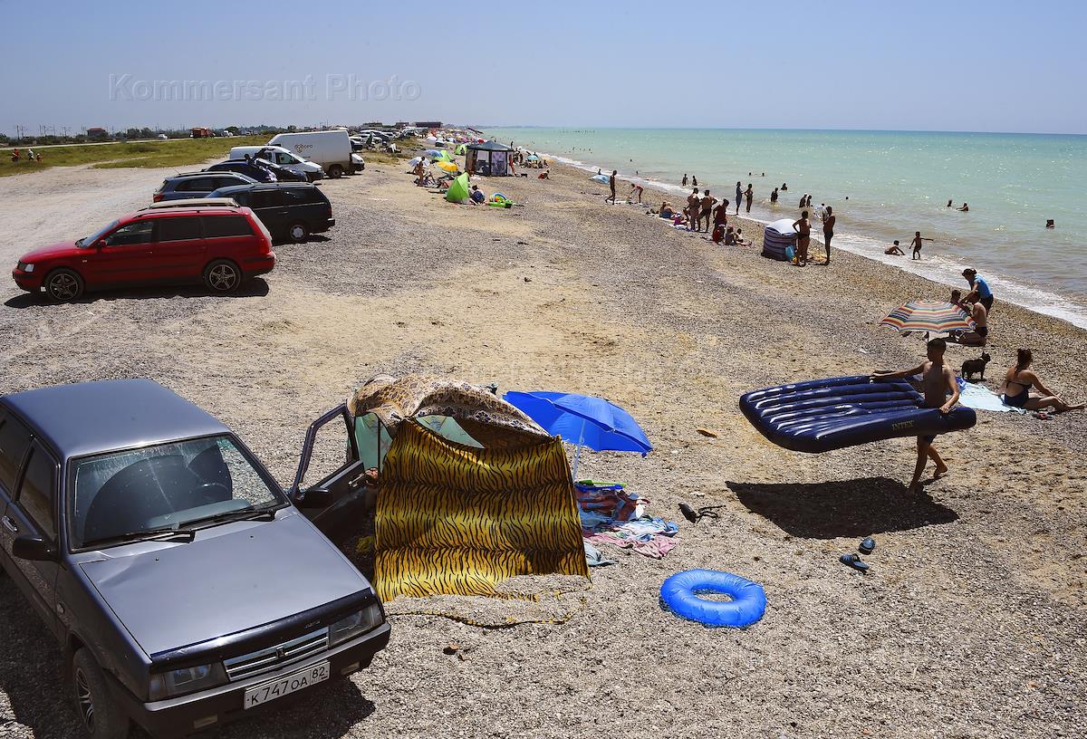 Жанровая фотография. Отдыхающие загорают рядом с ограждением пляжа.