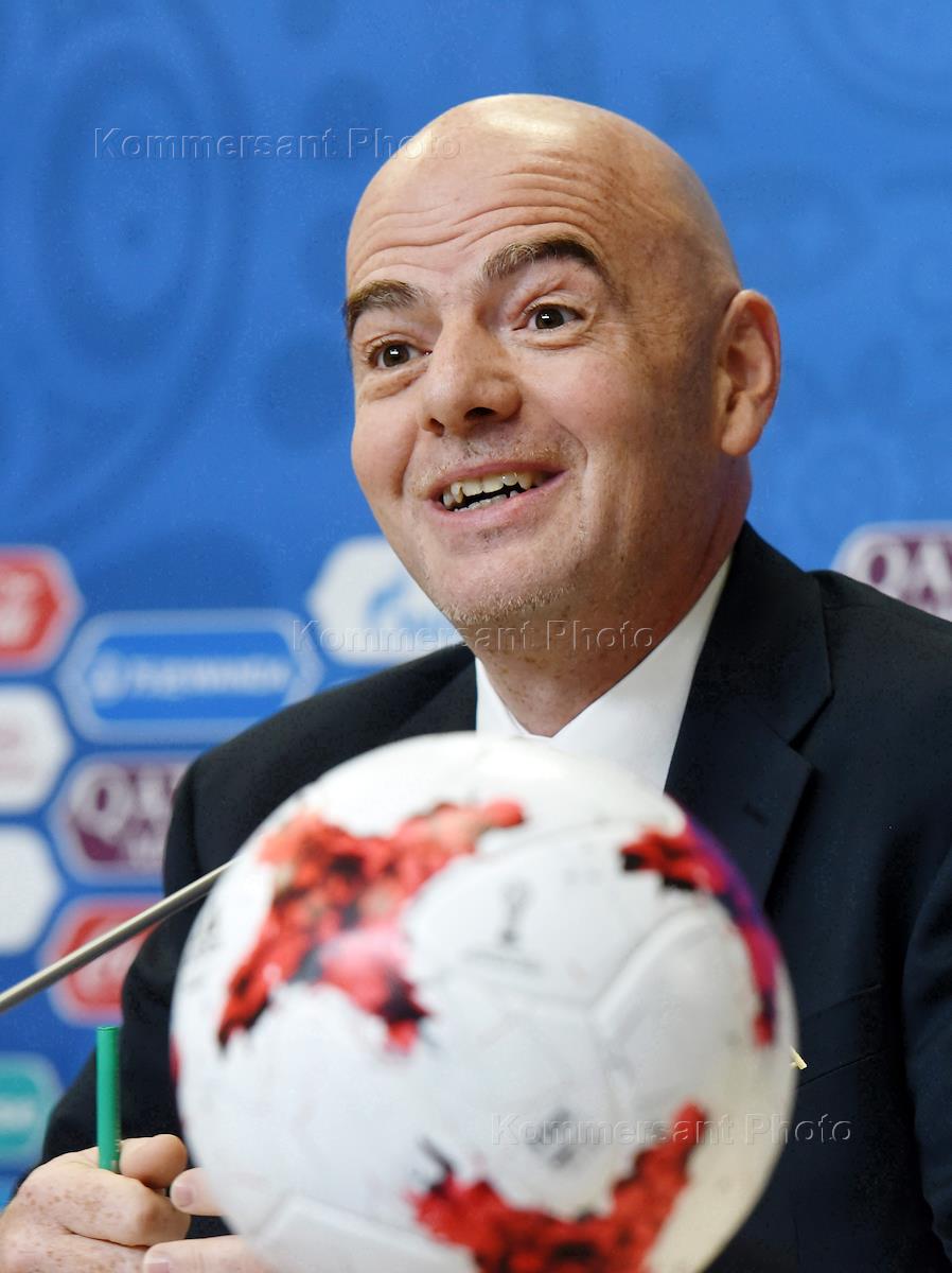 FIFA President Gianni Infantino during a press-conference according to the results of the FIFA Confederations Cup.