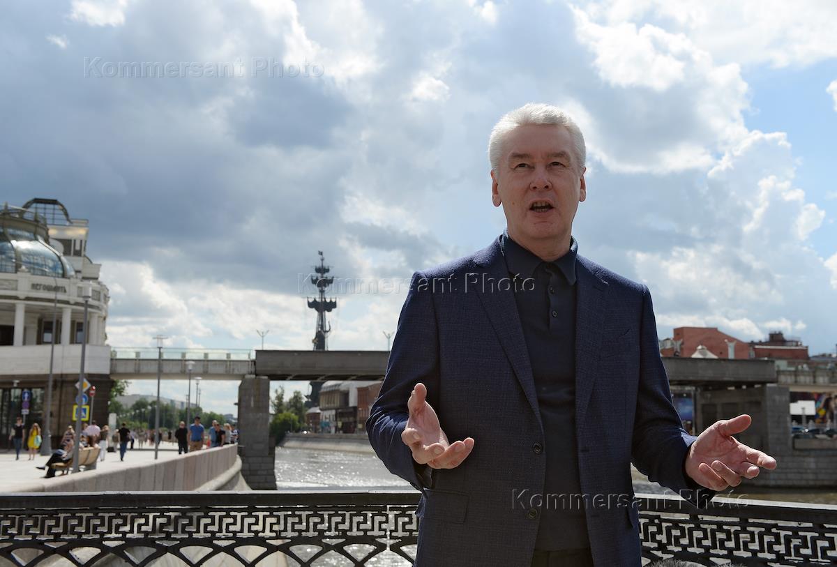 Мэр Москвы Сергей Собянин во время осмотра Якиманской набережной.