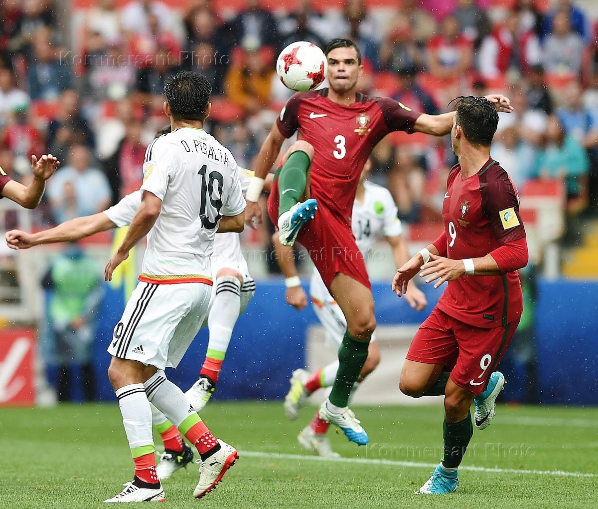FIFA Confederations Cup Russia 2017. Third placed play off between Portugal and Mexico at Spartak Stadium. Portugal's Pepe (backgroung left), Ricardo Quaresma (left foreground) with Nelson Semedo (center right) and Mexico's Raul Jimenez (center left) in action during the match.