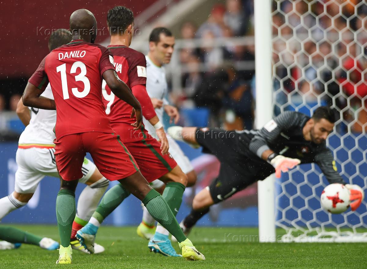 FIFA Confederations Cup Russia 2017. Third placed play off between Portugal and Mexico at Spartak Stadium. Mexico's goalkeeper Guillermo Ochoa (right) and Portugal's Gelson Martins (left) during the match.