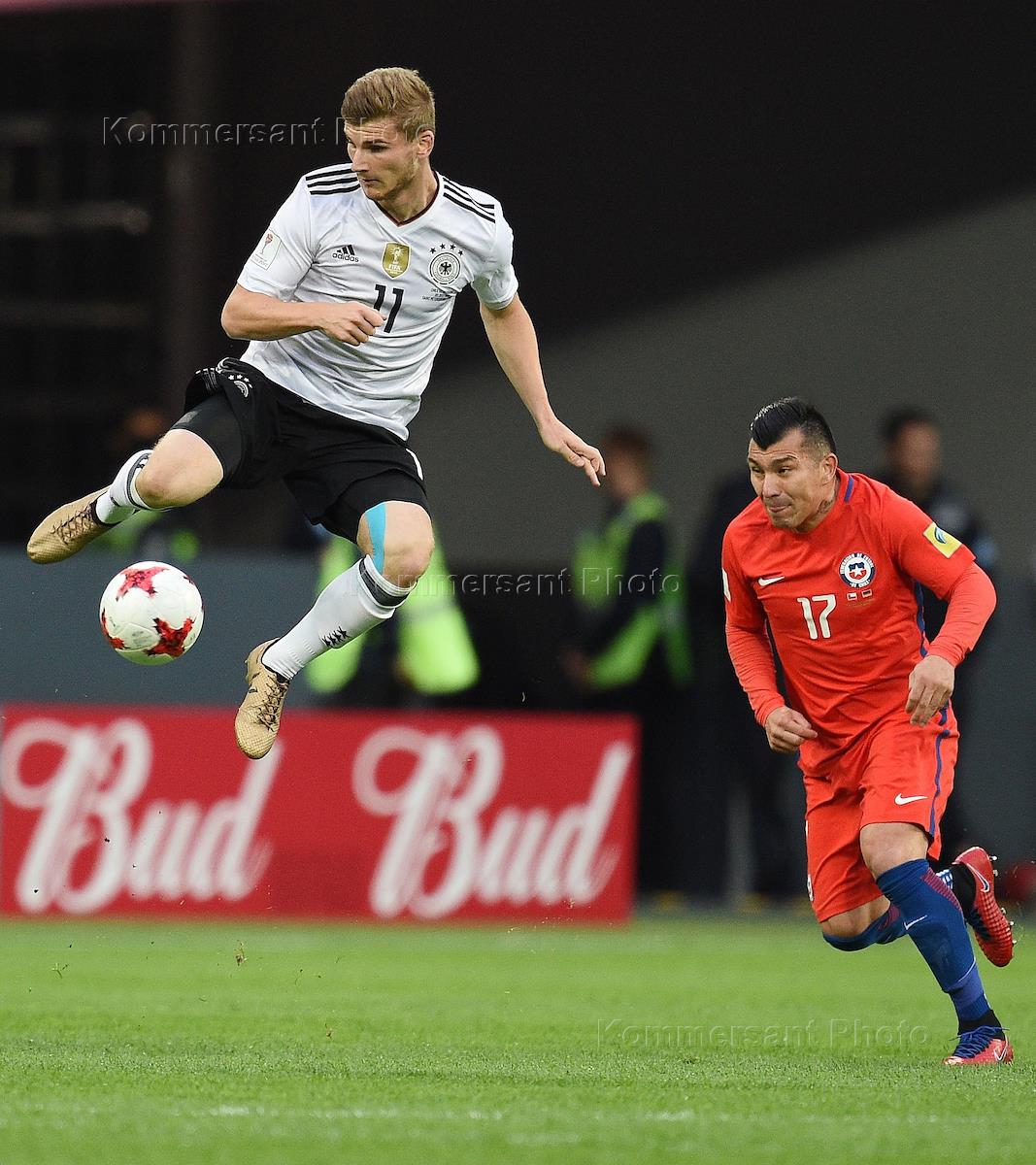 Кубок конфедераций FIFA 2017. Финал. Матч между сборными Чили и Германии на стадионе "Санкт-Петербург". Игрок сборной Германии Тимо Вернер во время матча.