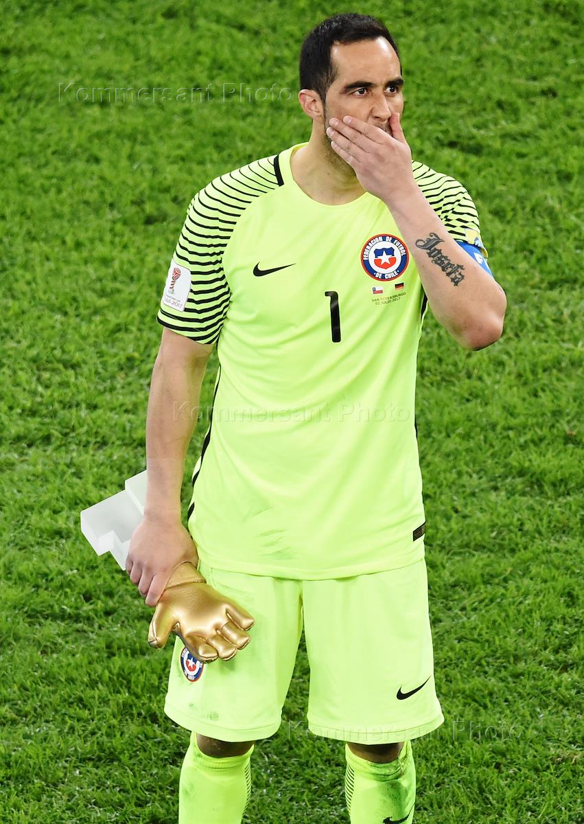 Кубок конфедераций FIFA 2017. Финал. Матч между сборными Чили и Германии на стадионе "Санкт-Петербург". Вратарь сборной Чили Клаудио Браво во время церемонии награждения.