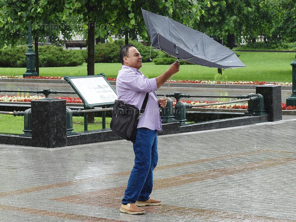 Жанровая фотография. Мужчина под зонтом в Александровском саду.