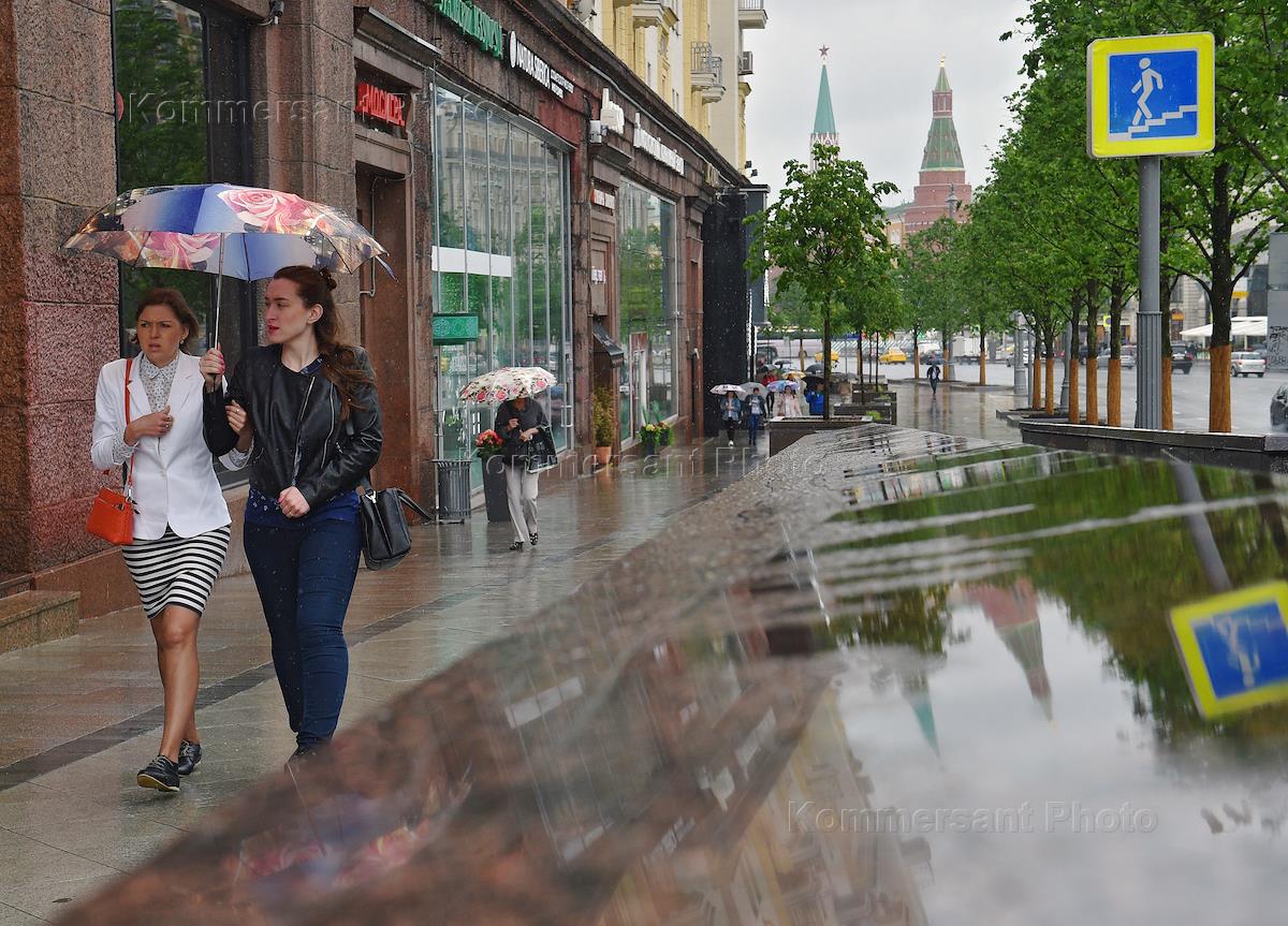 Genre photo. Bad weather in Moscow. Tourists are on Red Square.