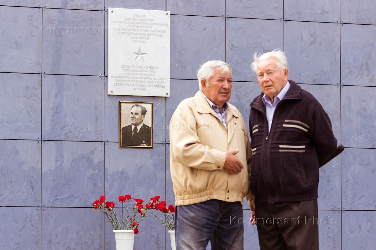 Праздничный митинг, приуроченный к 100 - летию со дня рождения Героя Советского Союза, летчика - истребителя Михаила Девятаева. Мемориальная доска Михаилу Девятаеву, установленная на здании Речного порта Казани.