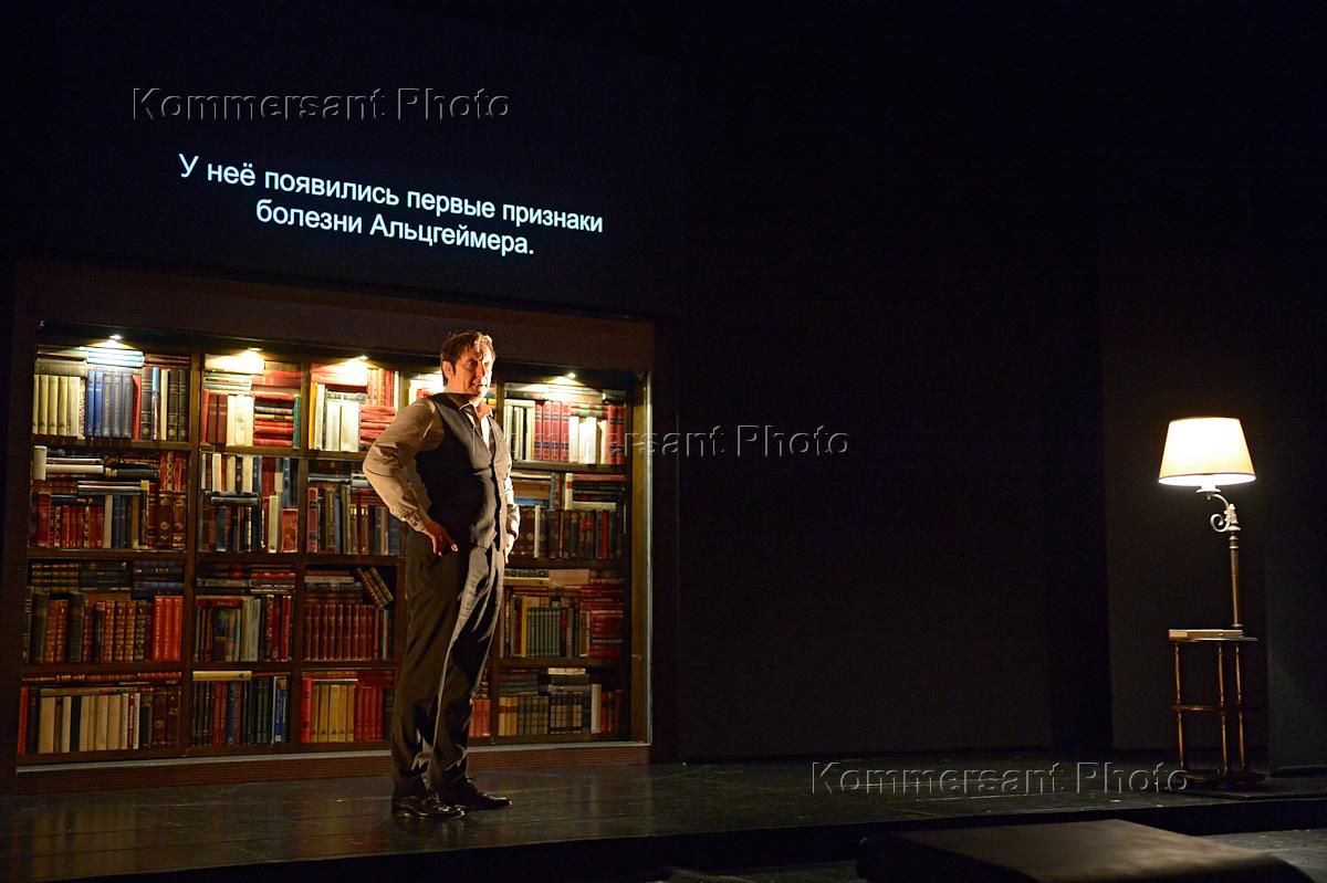 Международный театральный фестиваль имени А.П.Чехова 2017. Спектакль "887" компании "Экс Макина" (Квебек, Канада) в постановке режиссера Робера Лепажа прошел на сцене Театра Наций. Режиссер и исполнитель Робер Лепаж во время спектакля.