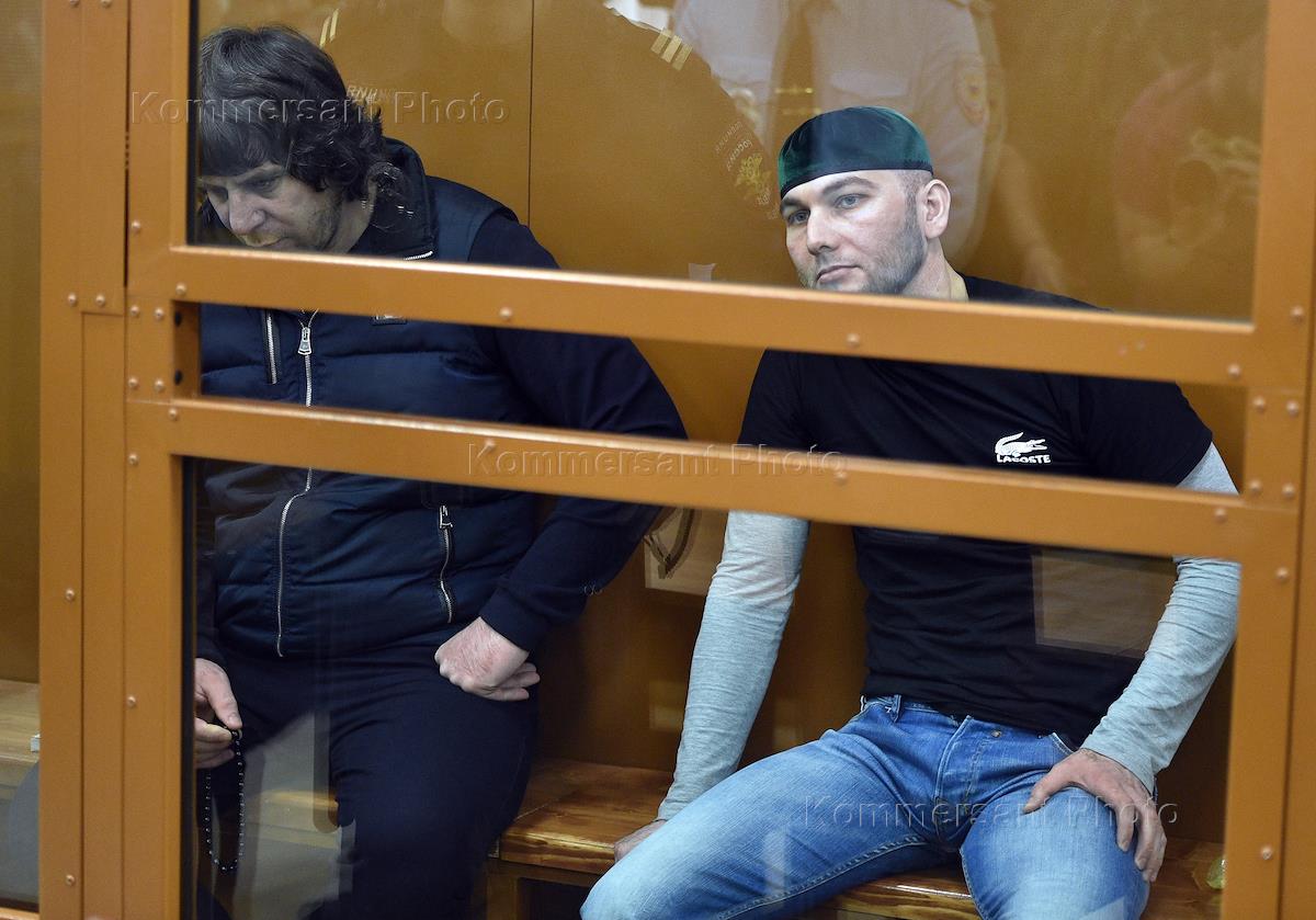 Обсуждение вердикта по делу об убийстве политика Бориса Немцова в Московском окружном военном суде. Слева направо: обвиняемые Темирлан Эскерханов и Шадид Губашев во время заседания суда.