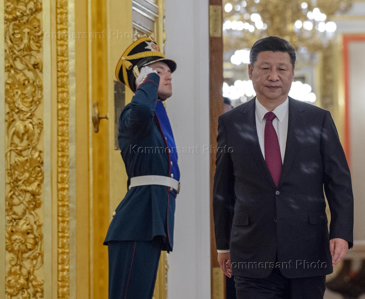 Председатель Китайской Народной Республики Си Цзиньпин во время встречи с президентом России Владимиром Путиным в Кремле.