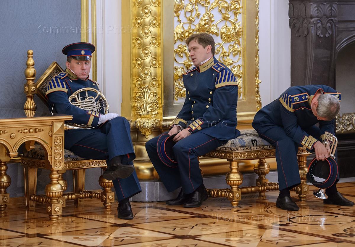 Встреча президента России Владимира Путина с председателем Китайской Народной Республики (КНР) Си Цзиньпином прошла в Кремле. Музыканты военного оркестра перед началом встречи.