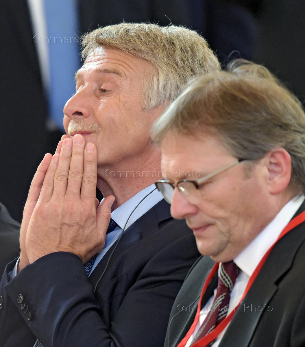 The meeting of the President of Russia Vladimir Putin with the President of People's Republic of China Xi Jinping. Chairman of "Novatek" Leonid Mikhelson (left) and the Minister of Russian Economic development Maxim Oreshkin (right) during the meeting.