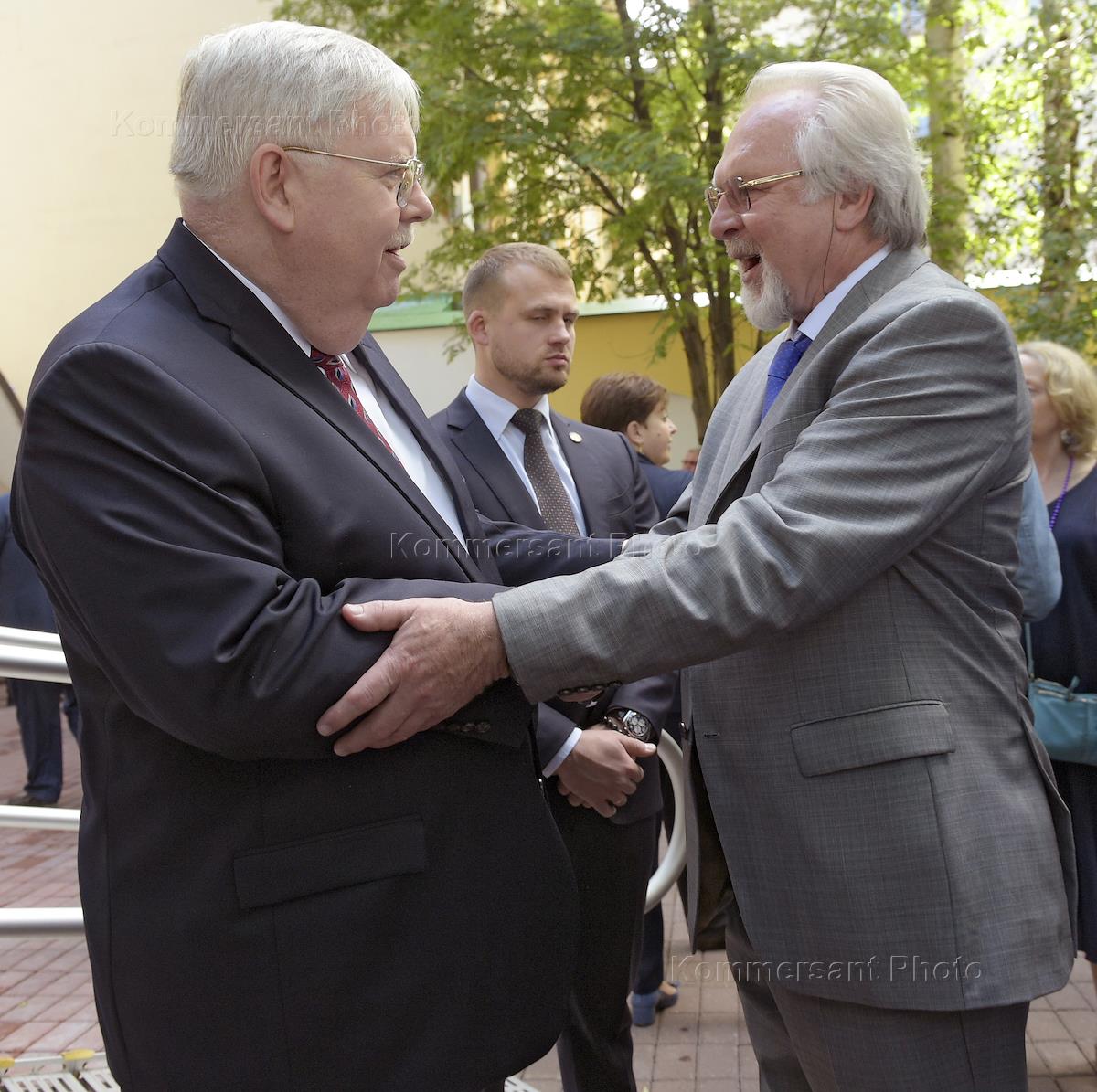 A reception on the occasion of the celebration of U.S. Independence Day at the residence of the Ambassador of the United States of America in Moscow. The Ambassador of USA in Russia John Tefft(left) and Senior Editor of "Nezavisimaya Gazeta" Konstantin Remchukov (right) during the reception.