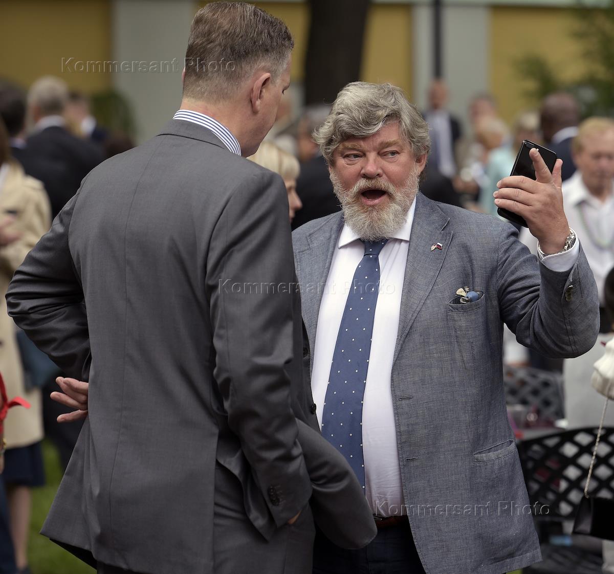 A reception on the occasion of the celebration of U.S. Independence Day at the residence of the Ambassador of the United States of America in Moscow. Senior Editor of "Nezavisimaya Gazeta" Konstantin Remchukov (right) during the reception.