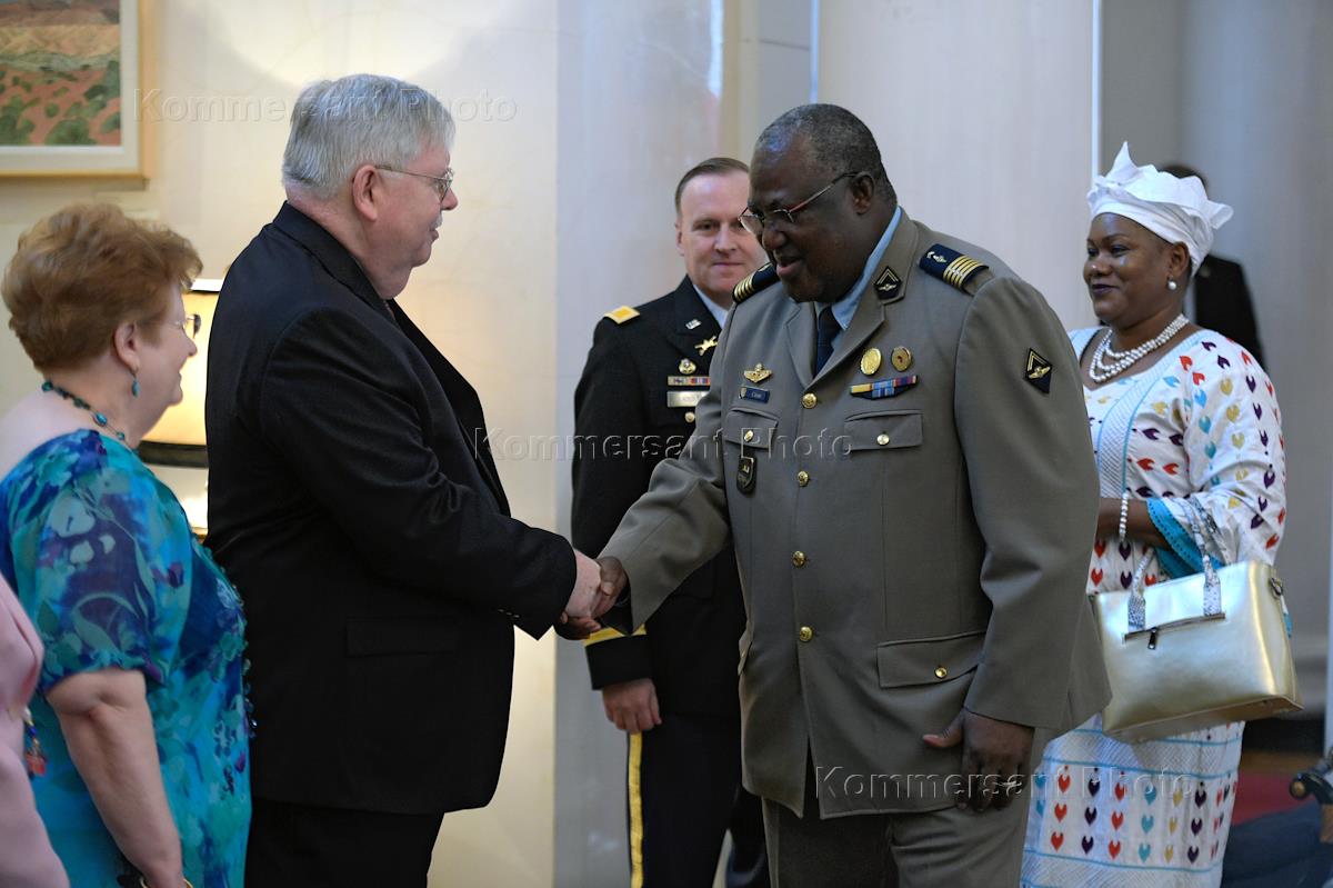 Торжественный прием по случаю празднования Дня Независимости США в резиденции посла Соединенных Штатов Америки в Москве. Посол США в России Джон Теффт (справа) и его супруга Мариэлла (в центре) во время приема.