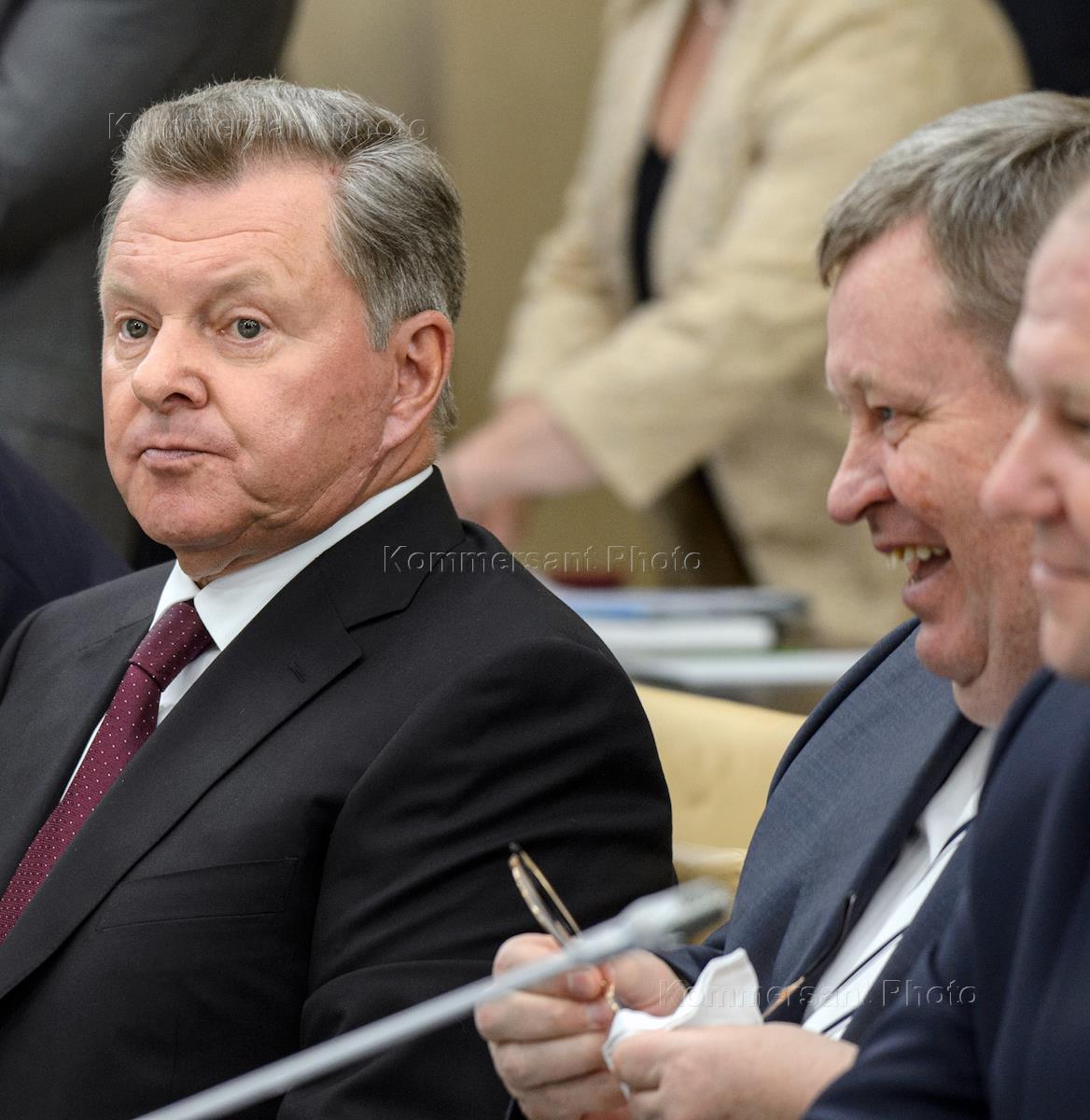 A meeting of the Council under the Russian President for strategic development and priority projects under the program "Digital economy". Plenipotentiary representative of Russian President in North Caucasus Federal district Oleg Belaventsev (left) and the Plenipotentiary representative of Russian President in the southern Federal district Vladimir Ustinov (right) before the meeting.