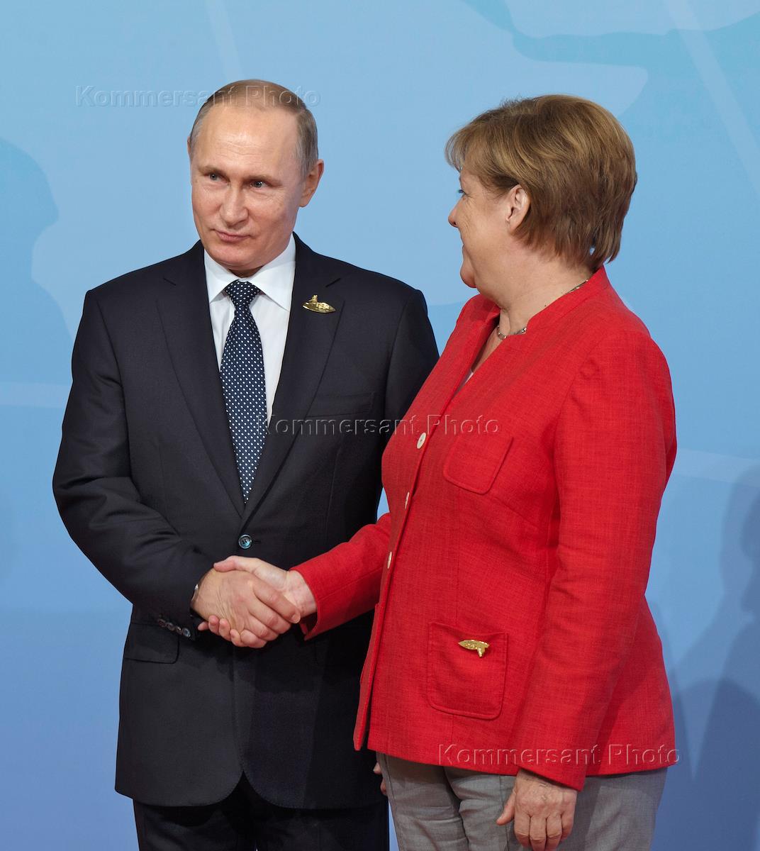 Russian president Vladimir Putin (left) meets German Federal Chancellor Angela Merkel (right) during the G20 Summit.
