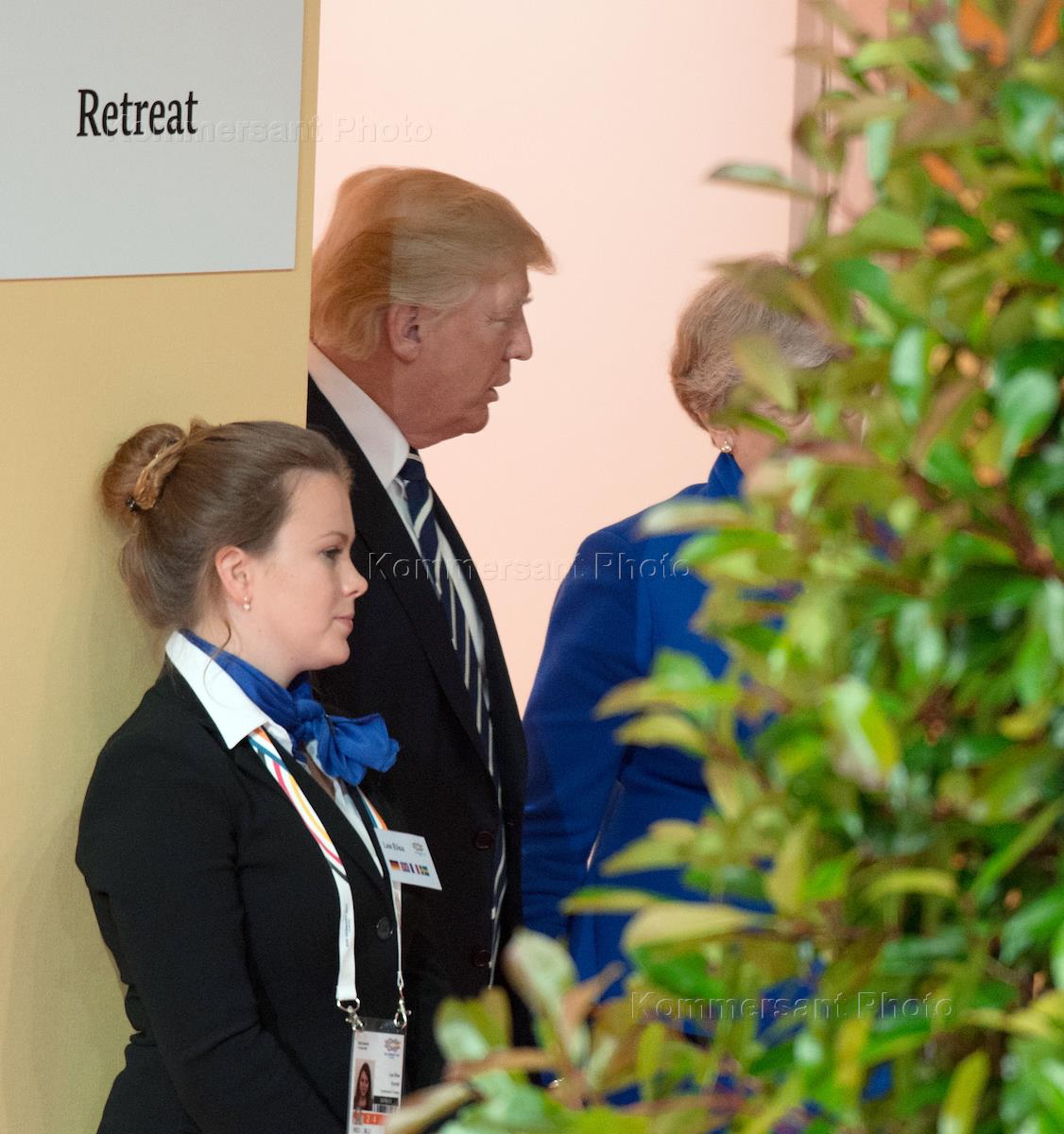 The Summit Of G20.The Minister of Foreign Affairs Sergey Lavrov (left) The President of Russian Federation Vladimir Putin (the third from left),the President of the USA Donald Trump (the third from right) and the Secretary of State Rex Tillerson during the meeting of the summit.