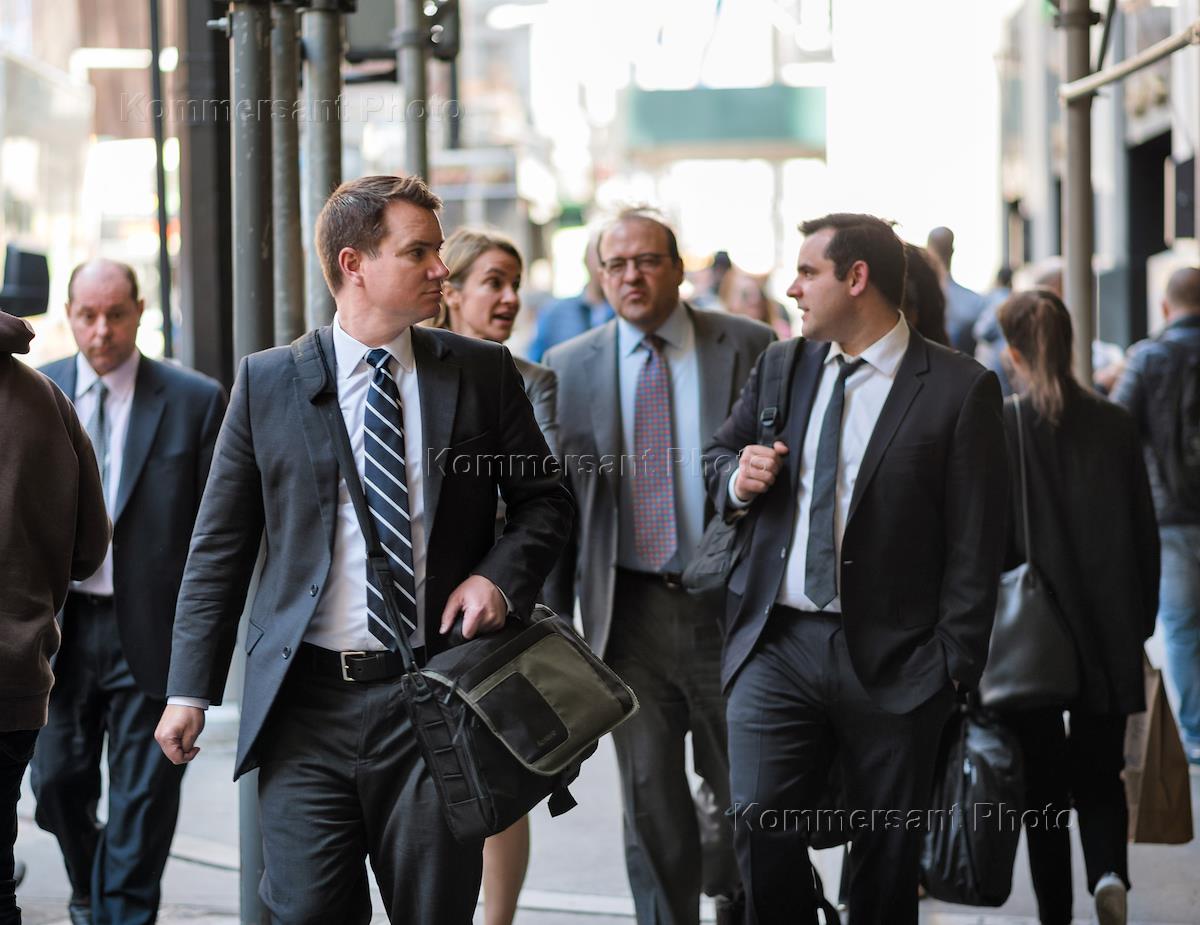 Genre photography. Views of New York. The people passing by at Wall Street.