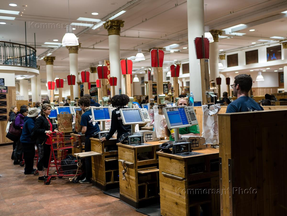 Жанровая фотография. Пожилой продавец во время посчета денег в киоске стрит-фуда.