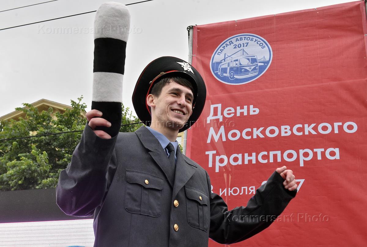 День Московского транспорта отметили на Фрунзенской набережной и в парке Горького. Милиционер с плюшевым жезлом во время праздника .