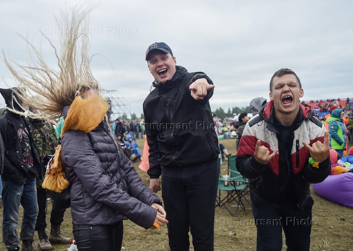 The 17th annual rock music festival "Nashestvie" in the village of Bolshoe Zavidovo. The visitors at "Alisa" concert during the festival.