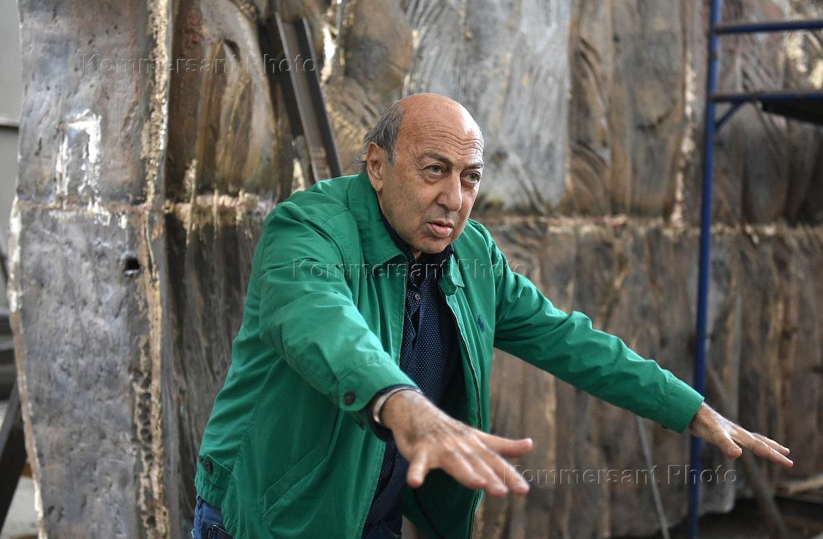 Мастерская скульптора Георгия Франгуляна, где создается первый общенациональный монумент жертвам массовых репрессий "Стена скорби". Скульптор Георгий Франгулян в мастерской.
