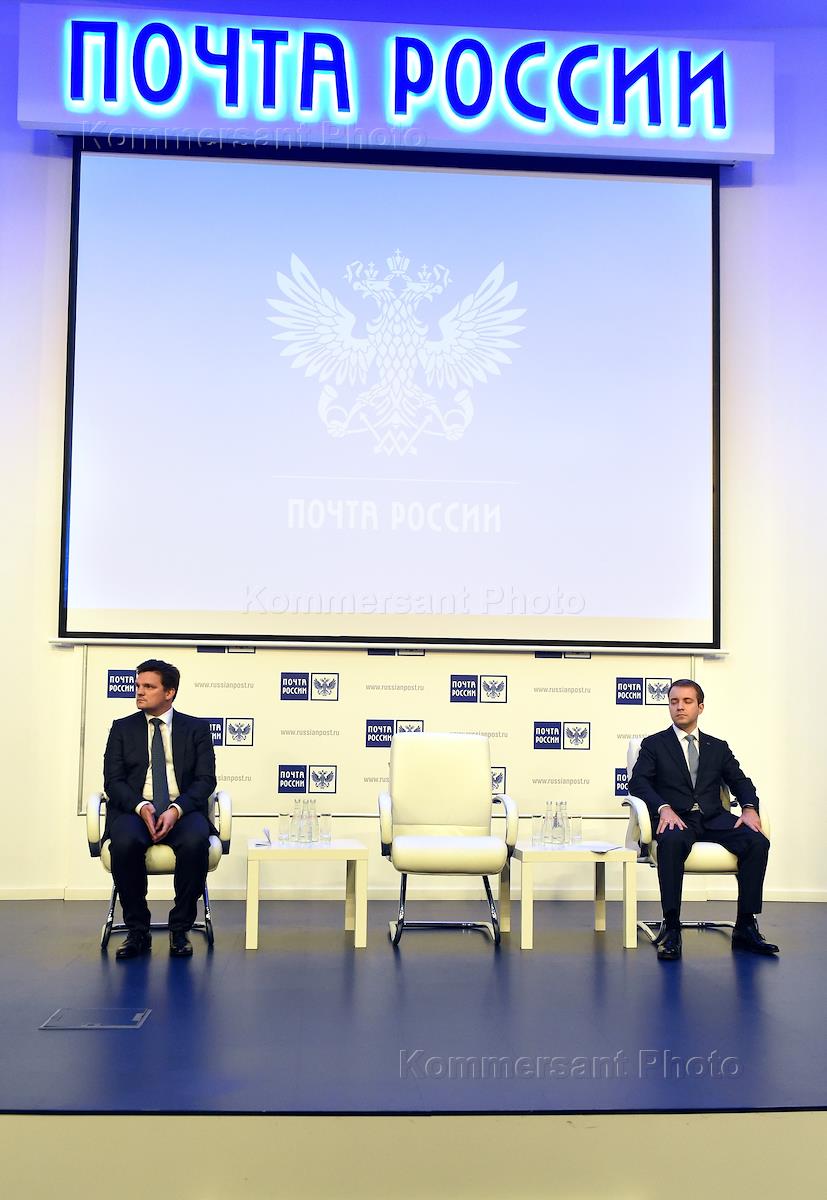 Представление нового генерального директора ФГУП "Почта России" Николая Подгузова коллективу предприятия. Генеральный директор ФГУП "Почта России" Николай Подгузов (слева) и министр связи и массовых коммуникаций Николай Никифоров (справа) во время представления.
