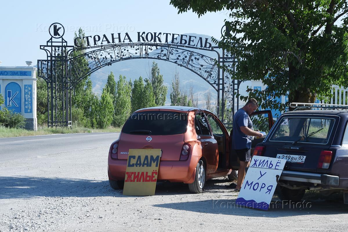 Жанровая фотография. Автомобили с плакатами о сдаче жилья внаем.