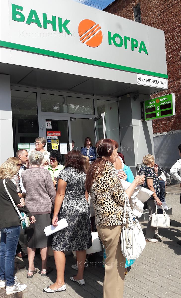 Жанровая фотография. Отделение банка "Югра". Вкладчики у входа в банк.