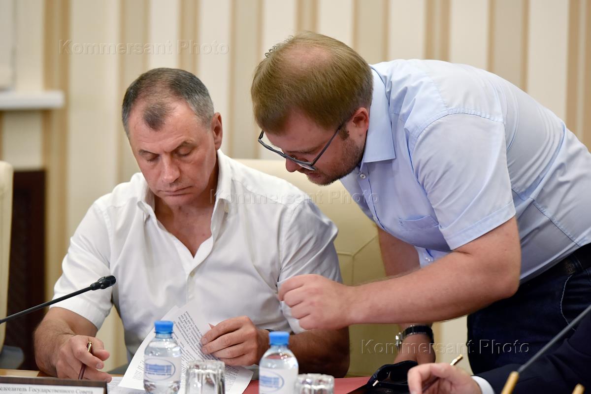 Заседание Совета министров Республики Крым (РК). Председатель Государственного совета РК Владимир Константинов (слева) во время заседания.