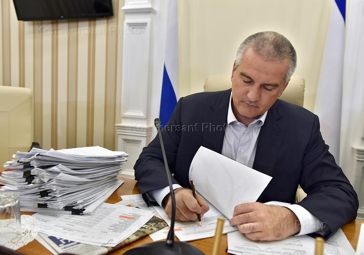 Заседание Совета министров Республики Крым (РК). Глава РК, председатель Совета министров РК Сергей Аксенов после заседания.