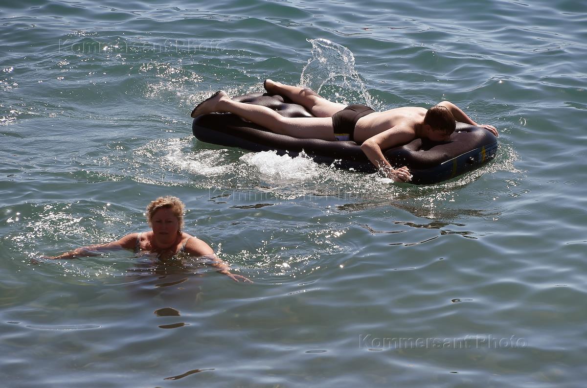 Жанровая фотография. Мужчина во время плавания на надувном матрасе.