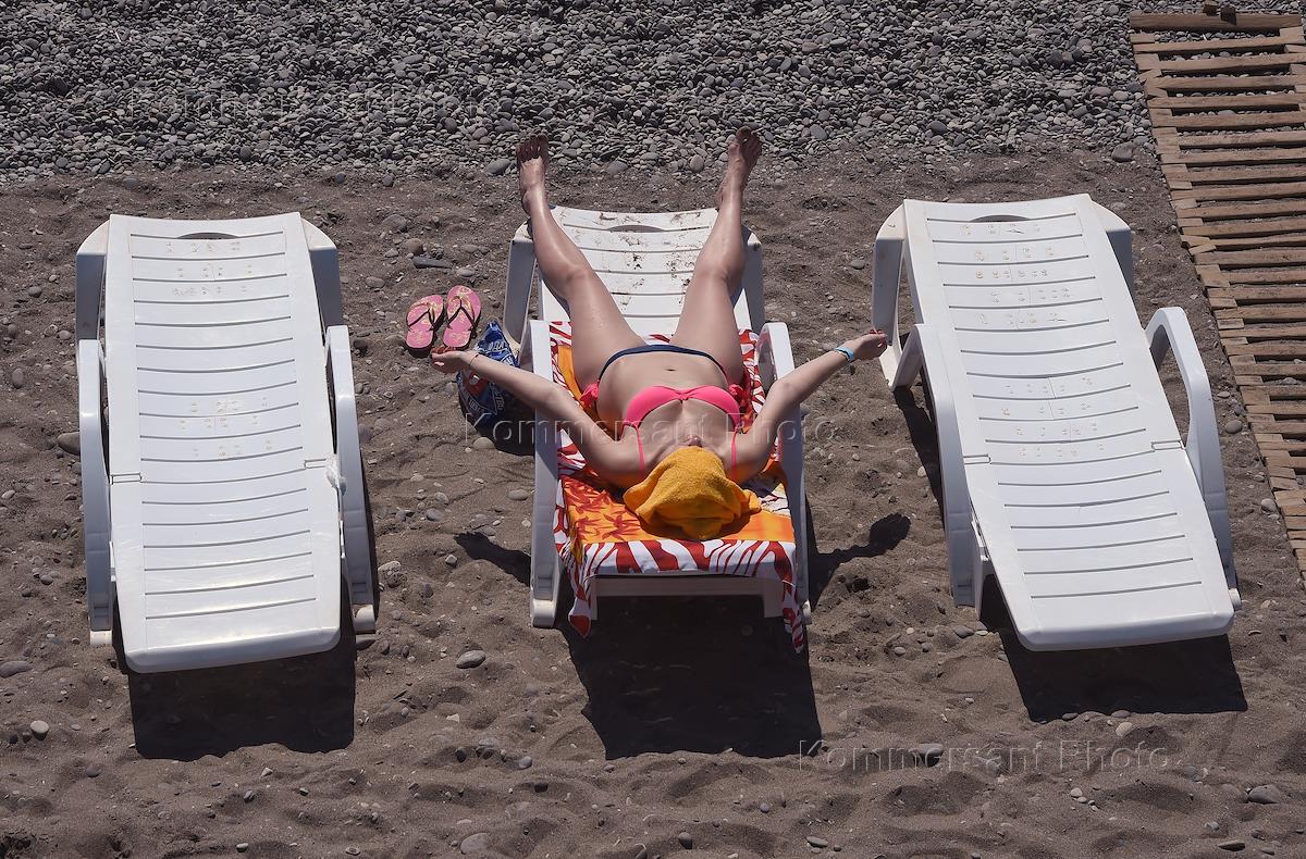 Жанровая фотография. Отдыхающие загорают на пляже.