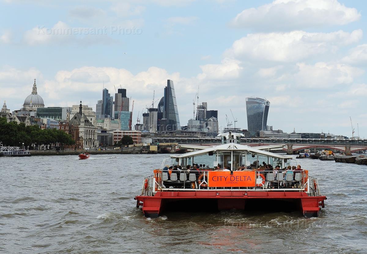 Views of London. The Westminster Palace. The tower with "Big-Ben' clock. The river Thames.