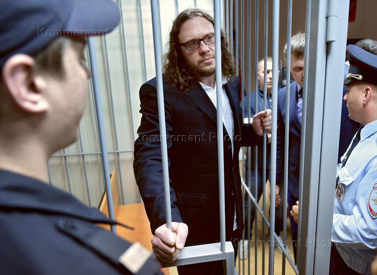 Businessman Sergei Polonsky(in centre), charged with fraud in the construction of residential compounds "Kutuzovskaya mile" and "Rublevsky Riviera" during the announcement of the verdict in Presnensky district court.