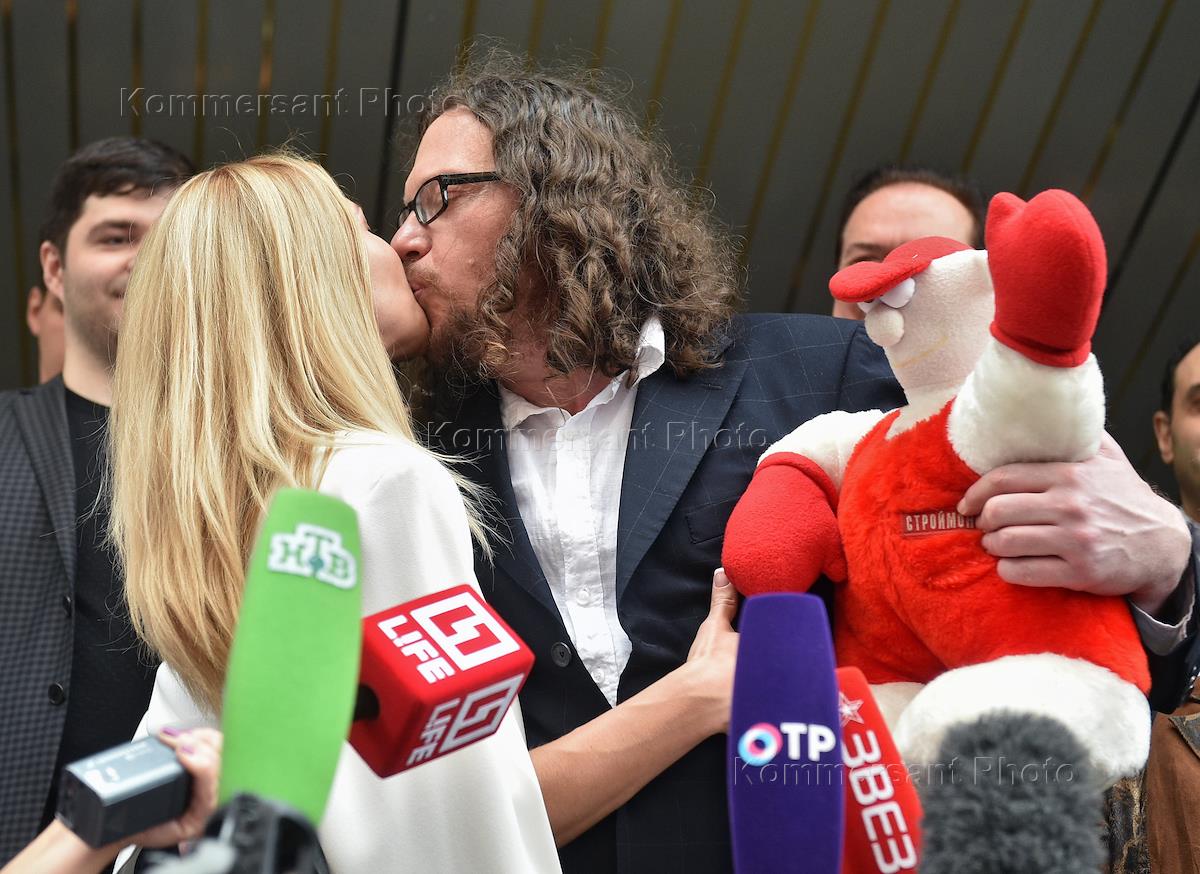 Businessman Sergei Polonsky (center), charged with fraud in the construction of residential compounds "Kutuzovskaya mile" and "Rublevsky Riviera", and his wife Olga Deripaska (left) after the announcement of the verdict in Presnensky district court.