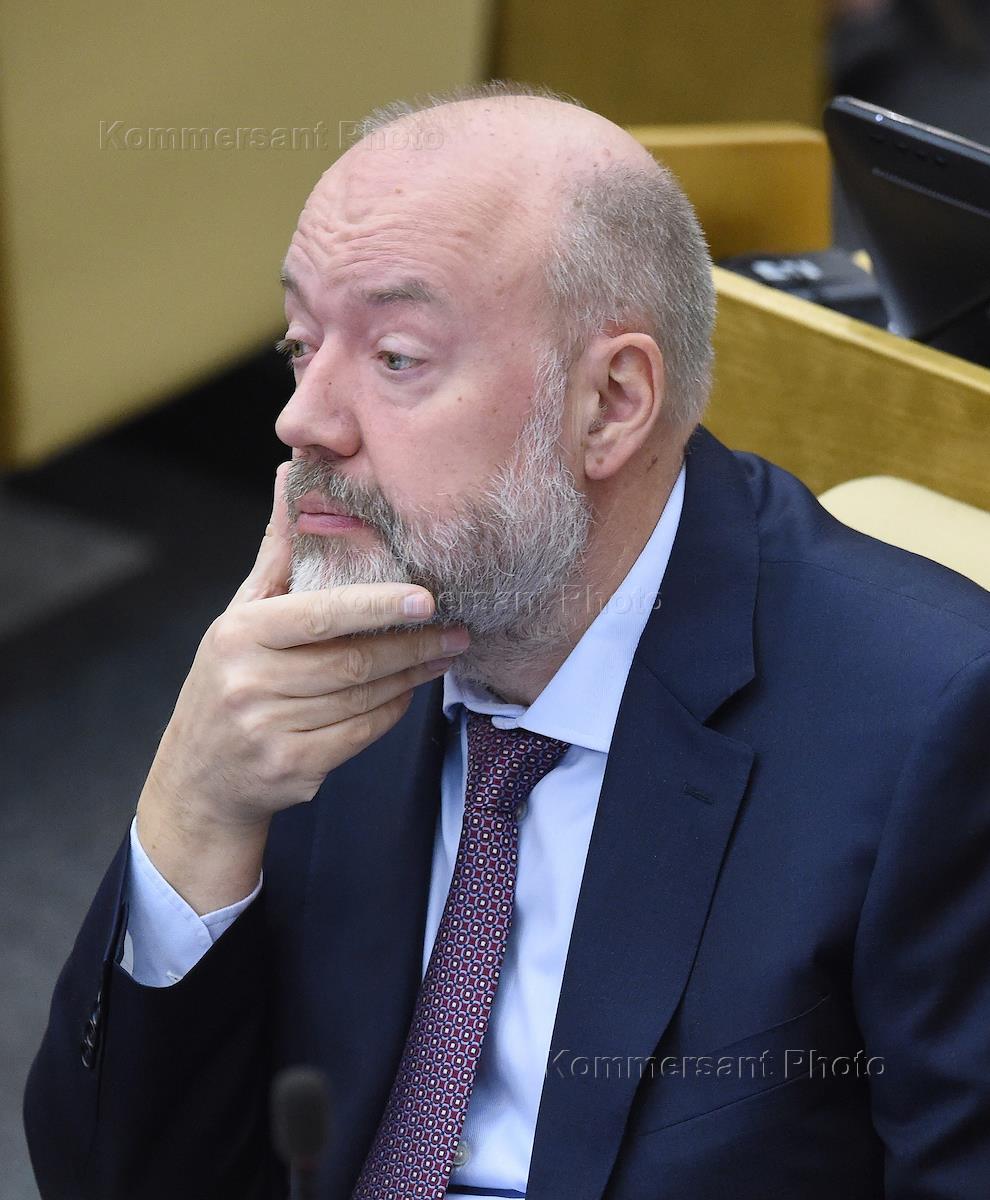 Plenary session of the State Duma of Russian Federation. The Chairman of the committee of Russia on state buiding and legislation, Pavel Krashennikov during the session.