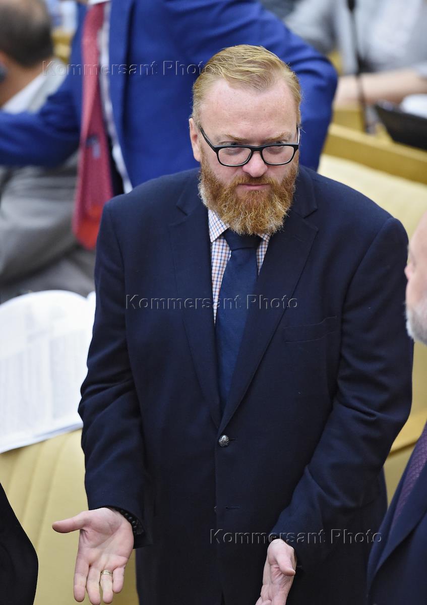 Plenary session of the State Duma of Russian Federation. The member of the State Duma committee of Russia on International Affairs, Vitaliy Milonov during the session.