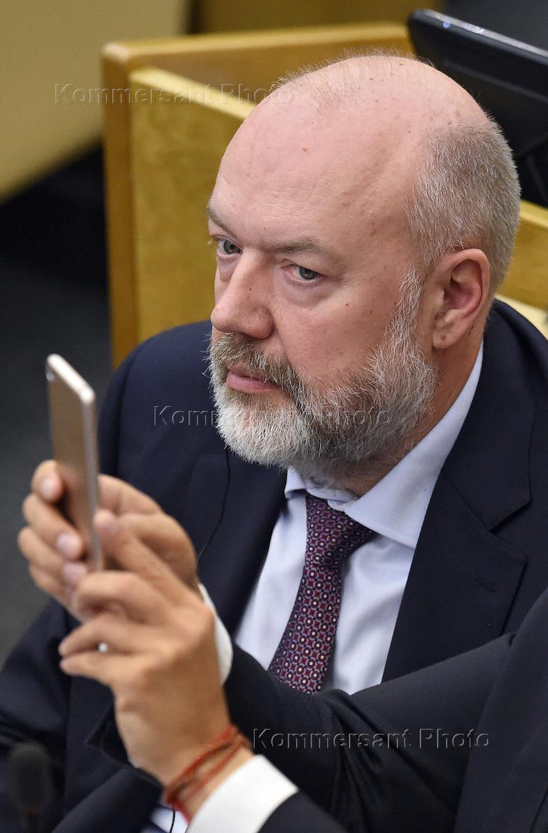 Plenary session of the State Duma of Russian Federation. The Chairman of the committee of Russia on state buiding and legislation, Pavel Krashennikov during the session.