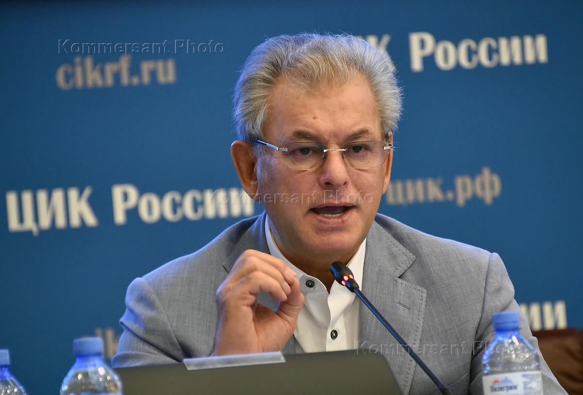 Пресс-конференция по подготовке к единому дню голосования 10 сентября 2017 года прошла в Информационном центре Центральной Избирательной Комиссии (ЦИК) России. Заместитель председателя ЦИК России Николай Булаев во время пресс-конференции.