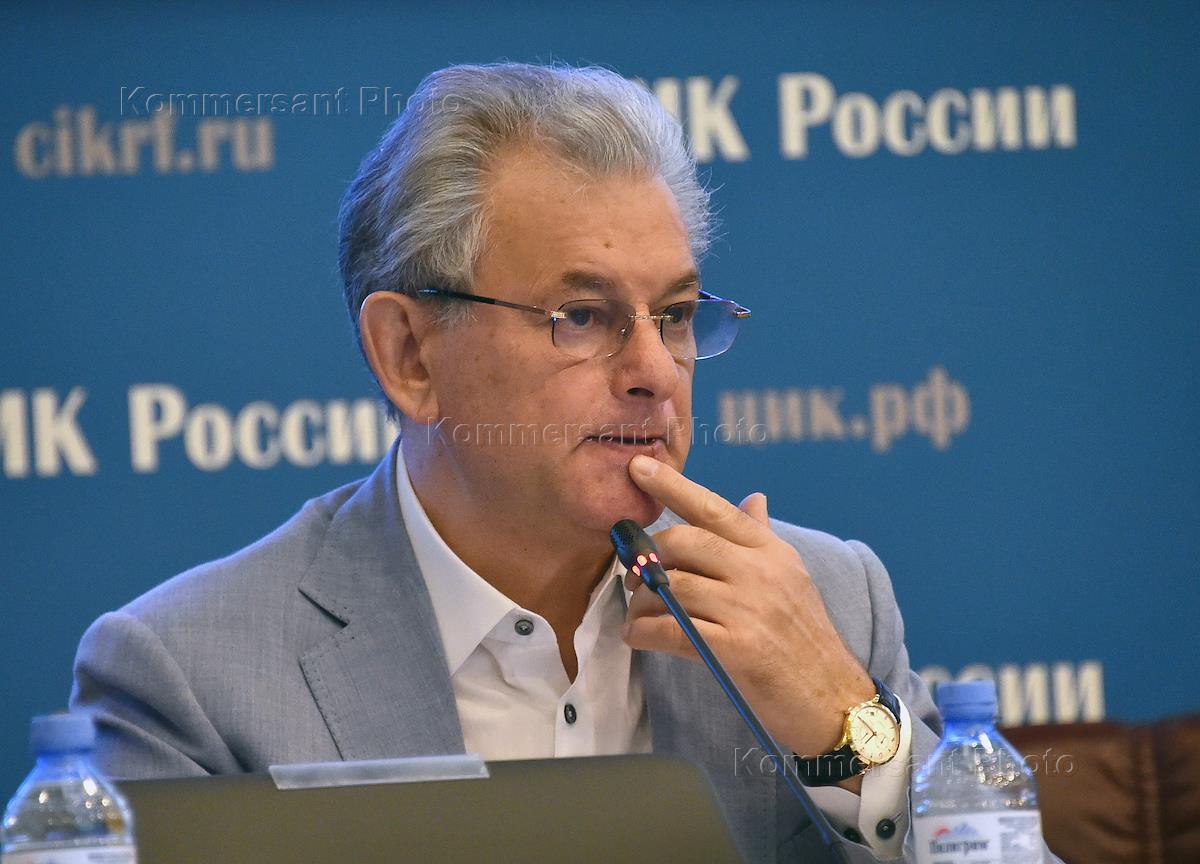 Пресс-конференция по подготовке к единому дню голосования 10 сентября 2017 года прошла в Информационном центре Центральной Избирательной Комиссии (ЦИК) России. Заместитель председателя ЦИК России Николай Булаев во время пресс-конференции.