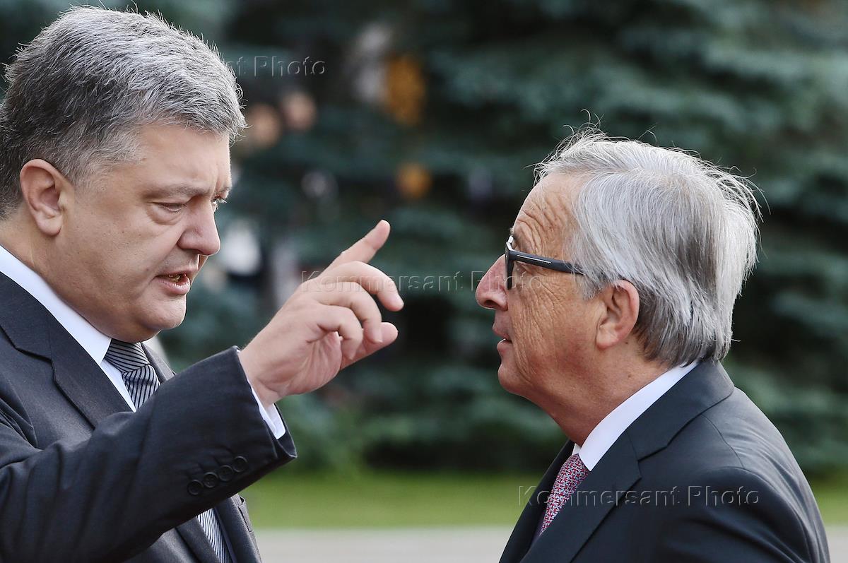 Президент Украины Петр Порошенко (слева) и президент Европейской комиссии Жан-Клод Юнкер (справа) во время XIX-го саммита Украина - Европейский Союз .
