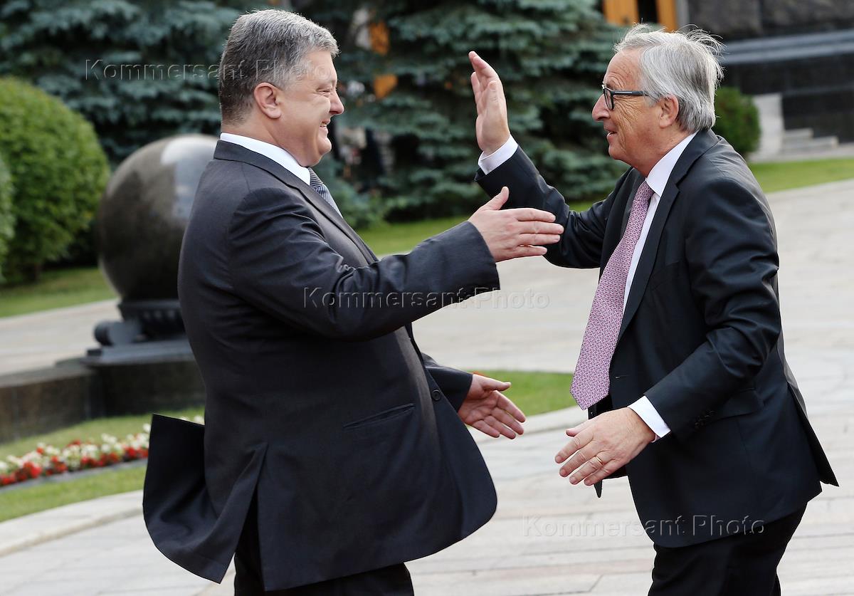 Президент Украины Петр Порошенко (слева) и президент Европейской комиссии Жан-Клод Юнкер (справа) во время XIX-го саммита Украина - Европейский Союз .