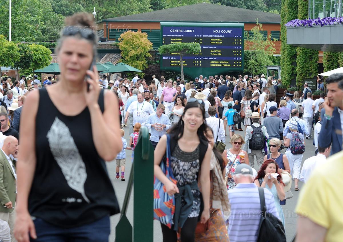 Уимблдонский международный теннисный турни. Зрители у сувенирного магазина.
