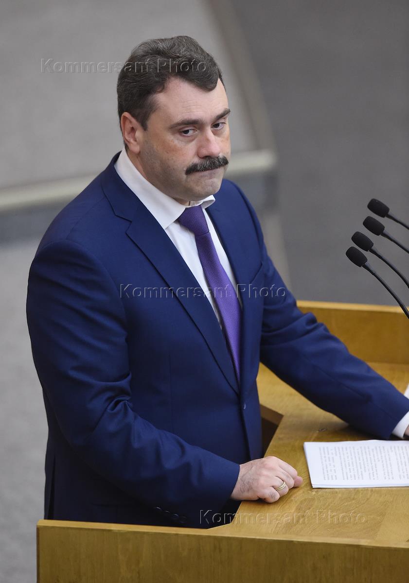Пленарное заседание Государственной думы (ГД) России. Председатель комитета ГД России по транспорту и строительству Евгений Москвичев во время заседания.