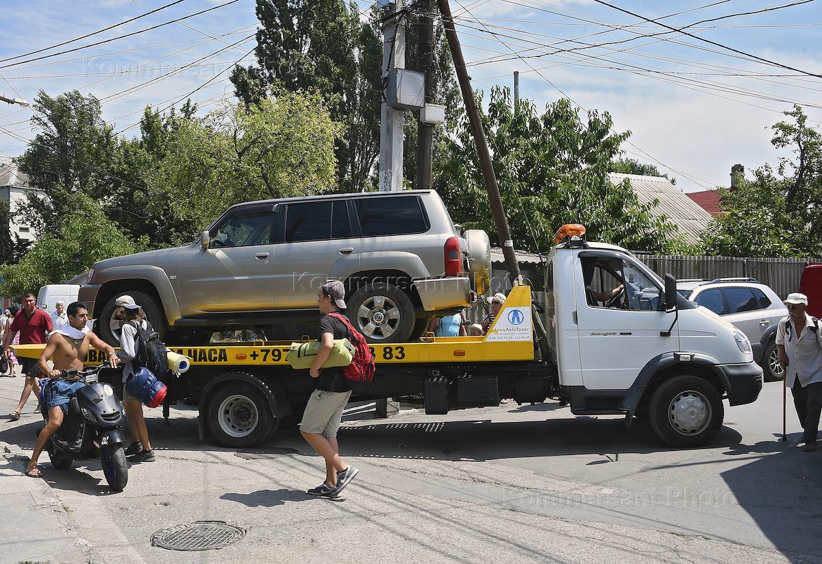 Жанровая фотография. Работа эвакуатора на одной из улиц Алушты.